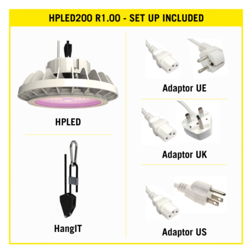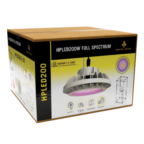 A Secret Jardin HPLED200 egy ˝teljes spektrumú˝ (az UV és IR-t is beleértve) LED. A növekedési és virágzási szakaszokkal kompatibilis, nagyon egyszerűen állítható a magassága.